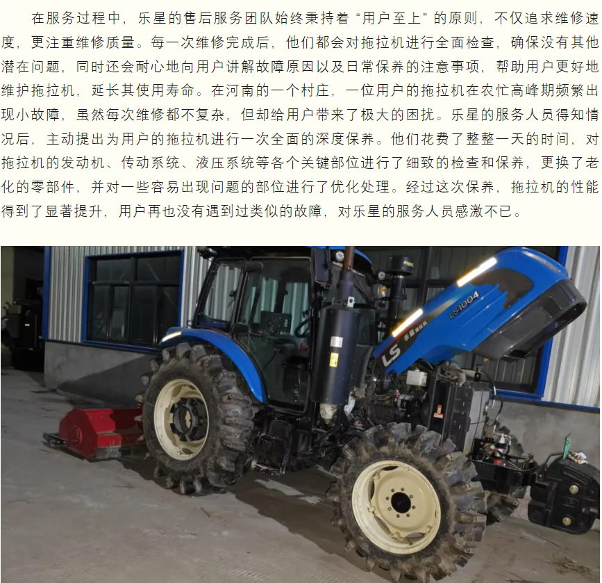 乐星拖拉机厂售后服务团队全力支援农忙 获用户一致好评