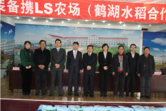为弘扬“乐善好施、大爱无求”的慈善精神,切实为沈阳市困难群众送去社会各界的关爱,2014年12月17日上午在辽宁省大民屯中心养老院举行了“LS农场”的大米捐赠仪式,沈阳韩国领事馆副领事,新民市民政局局长,沈阳市慈善总会,LS农业装备总经理,新民市鹤湖水稻专业生产合作社社长参加了本次捐赠仪式。